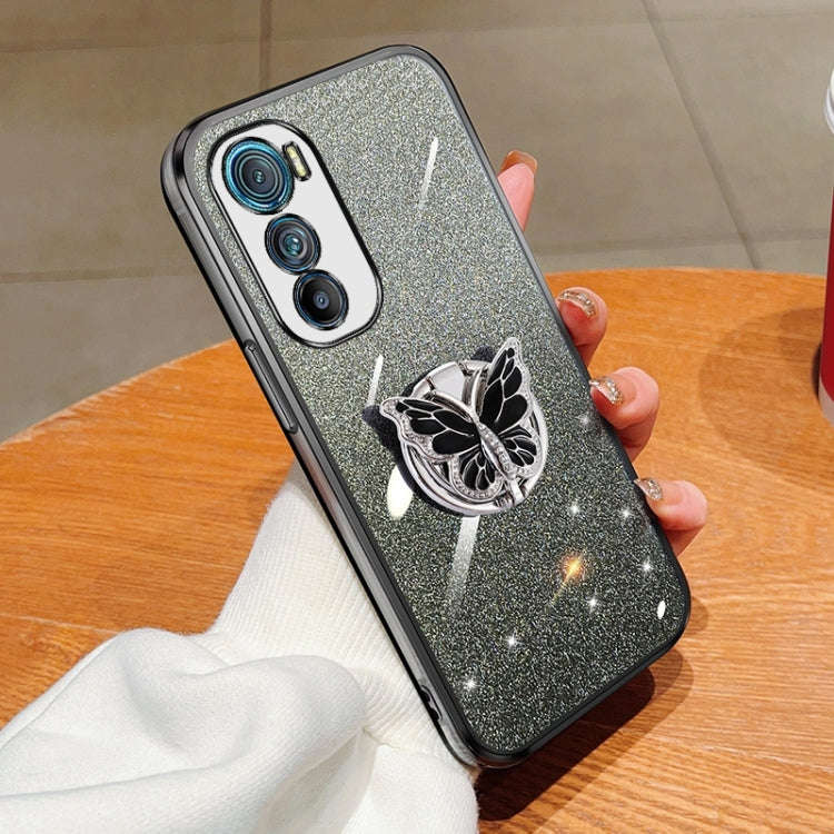 Funda para Motorola Edge 30 de TPU con Soporte de Mariposa y Brillo Degradado (Negro)