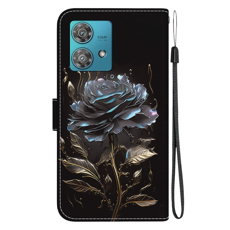 Estuche para Motorola Edge 40 Neo de Cuero con Dibujo Coloreado y Textura de Cristal (Rosa Negra)