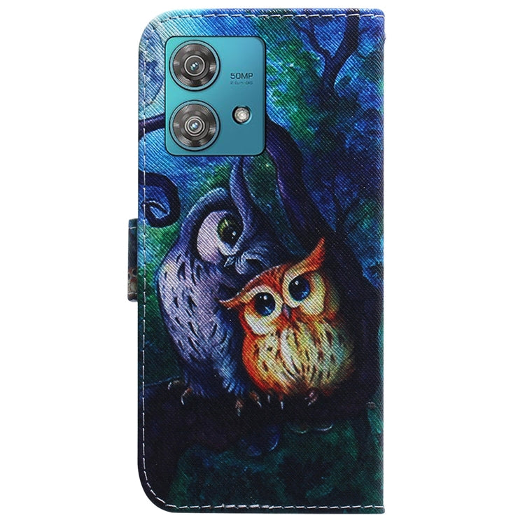 Funda de Cuero para Motorola Edge 40 Neo con Tapa y Dibujo Búho de Pintura al Óleo