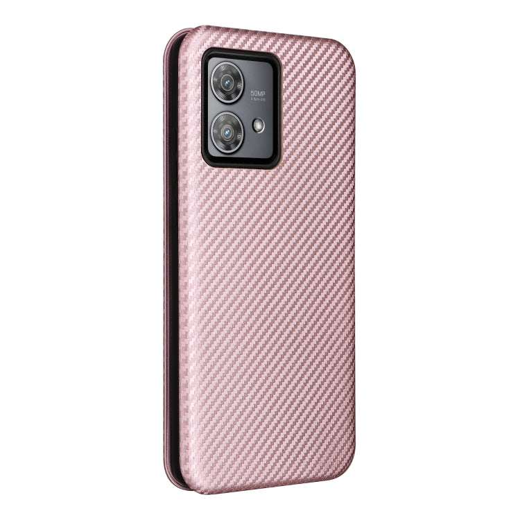 Funda de Cuero con Tapa para Motorola Edge 40 Neo con Textura de Fibra de Carbono (Rosa)