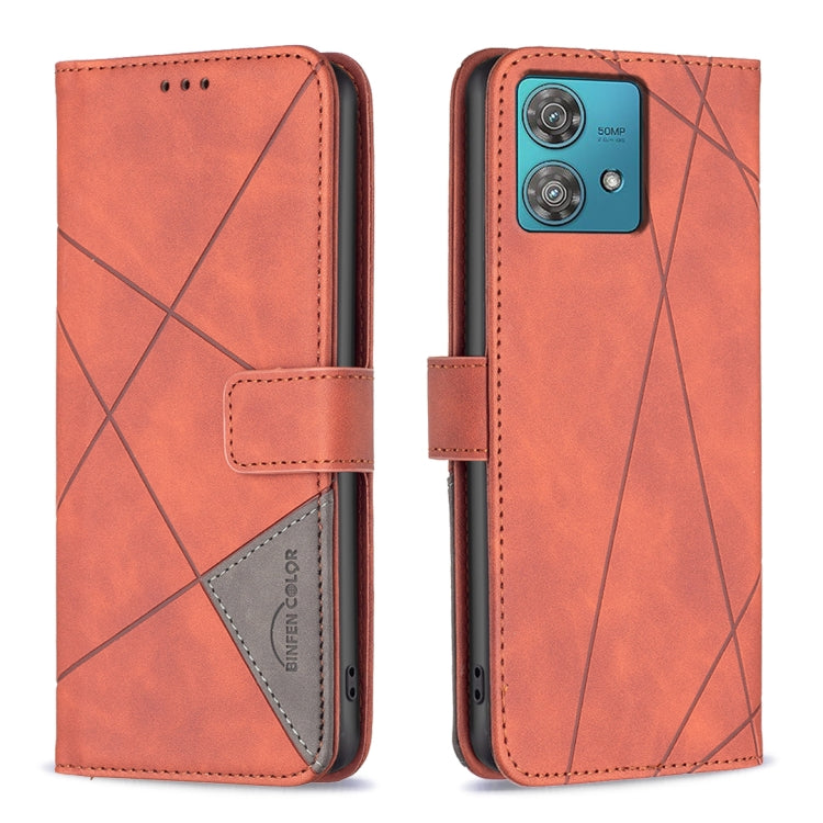 Funda para Motorola Edge 40 Neo de Cuero con Textura de Rombo y Hebilla Magnética (Marrón)