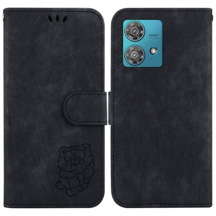 Funda de Cuero para Motorola Edge 40 Neo Little Tiger en Relieve (Negro)