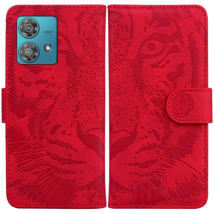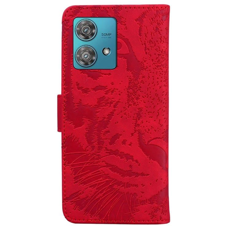 Funda de Cuero para Motorola Edge 40 Neo Tiger con Patrón en Relieve (Rojo)