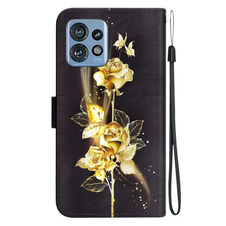 Funda de Cuero para Motorola Edge 40 Pro con Dibujo Coloreado y Textura de Cristal (Mariposa Dorada Rosa)