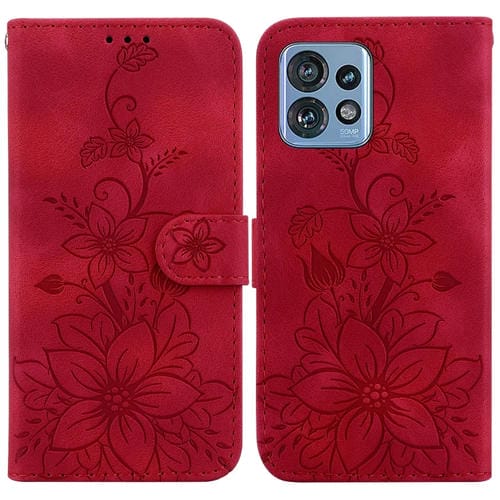 - 1x Funda de Cuero en Relieve para Motorola Edge 40 Pro Lily (Rojo)