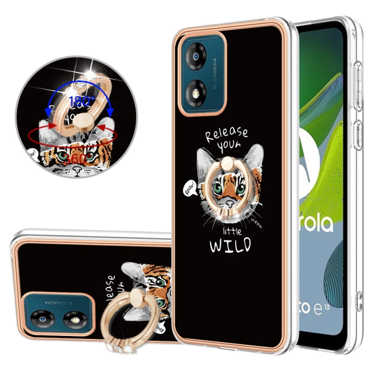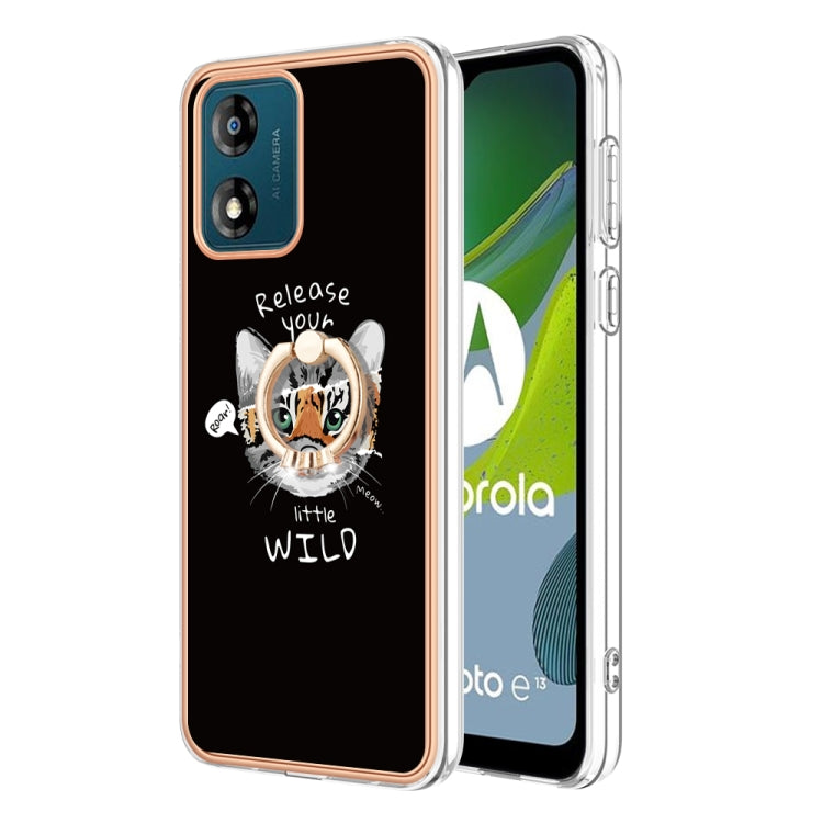 Funda para Motorola Moto E13 Galvanoplastia IMD Doble Cara con Soporte para Anillo (Crecimiento Natural)