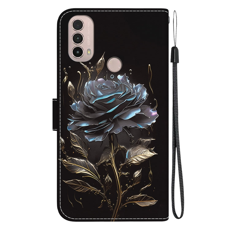 Funda para Motorola Moto E20 E30 E40 de Cuero con Dibujo y Textura de Cristal (Rosa Negra)