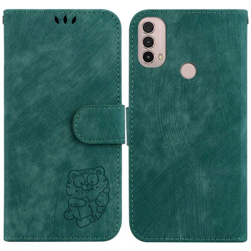 - 1x Funda para Motorola Moto E20, E30 y E40 de Cuero con Relieve Little Tiger (Verde)