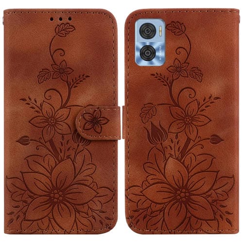 - 1x Funda de Cuero En Relieve para Motorola Moto E22 / E22I Lily (Marrón)
