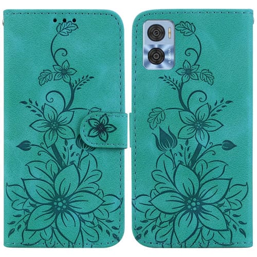 - 1x Funda de Teléfono Motorola Moto E22 / E22I Lily Cuero en Relieve (Verde)