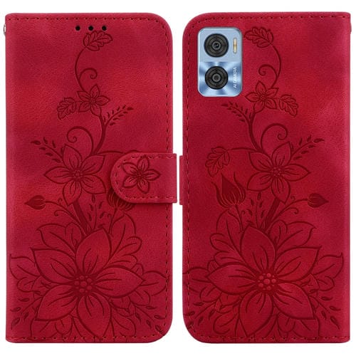 - 1x Funda para Motorola Moto E22 / E22I Lily de Cuero en relieve (Rojo)