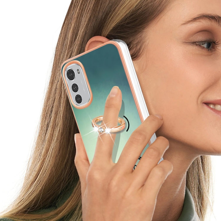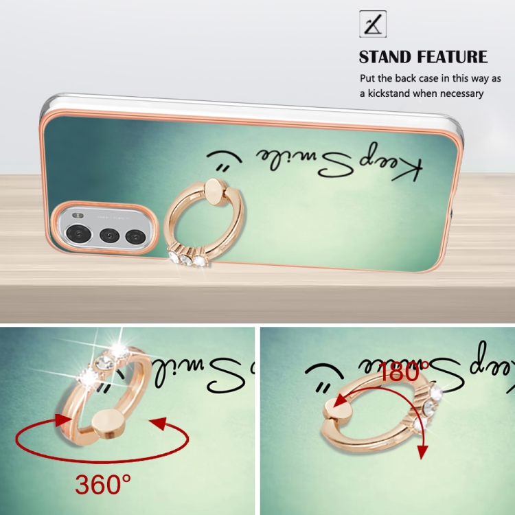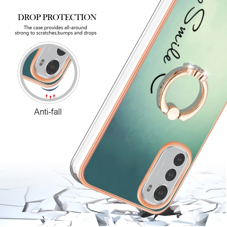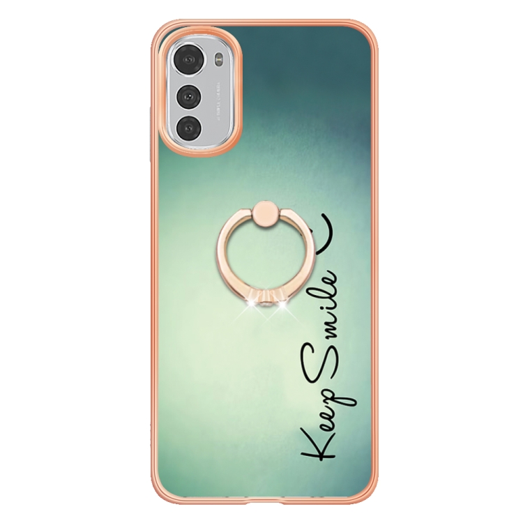 Estuche para Motorola Moto E32 4G / E32S Imd Doble Cara con Galvanoplastia y Soporte para Anillo (Sonrisa)