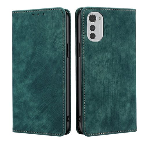 Funda de Cuero Magnética para Motorola Moto E32 4G con Rfid y Cepillo Antirrobo (Verde)