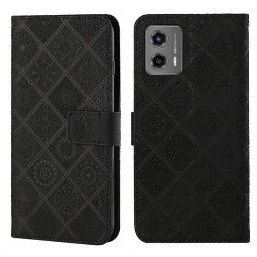 Funda de Cuero para Motorola Moto G 2023 con Patrón en Relieve Estilo Étnico (Negro)