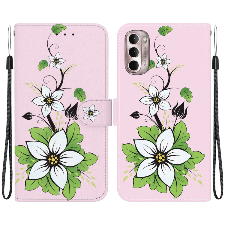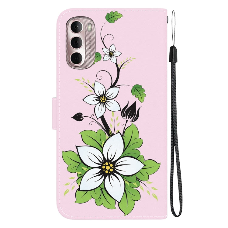 Funda de Cuero para Motorola Moto G Stylus 4G 2022 con Dibujo Coloreado y Textura de Cristal (Lirio)