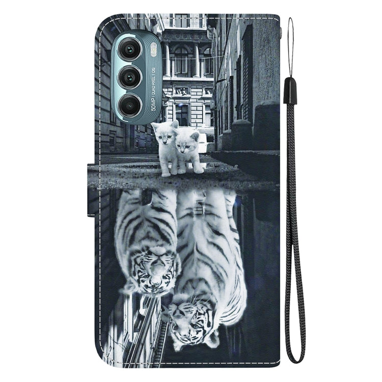 Funda de Cuero para Motorola Moto G Stylus 5G 2022 con Dibujo Coloreado y Textura de Cristal (Reflejo de Tigre Gato)
