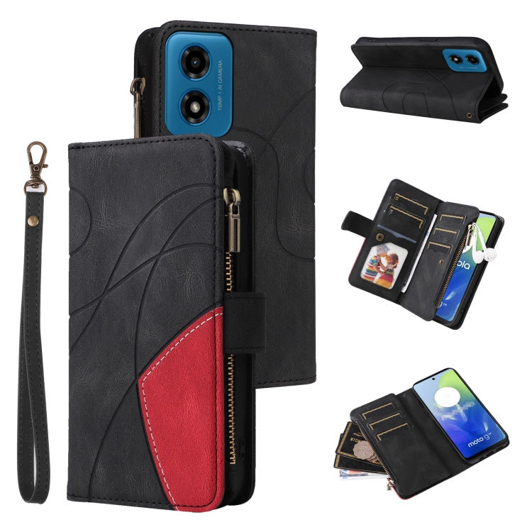 Funda de Cuero para Motorola Moto G04 / G24 con Billetera, Cremallera y 9 Ranuras (Negro)