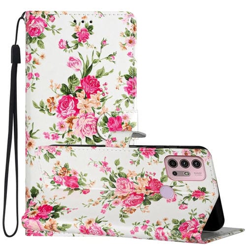 Estuche para Teléfono Motorola Moto G10 / G30 de Cuero con Dibujo a Color (Peonías)
