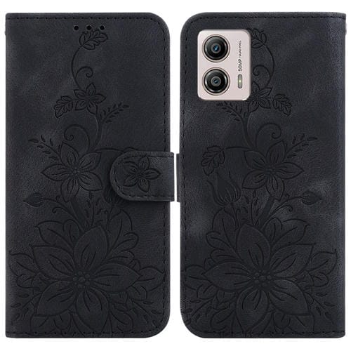 - 1x Funda de Cuero con Relieve Lily para Motorola Moto G13 / G23 / G53 (Negro)