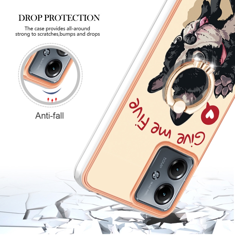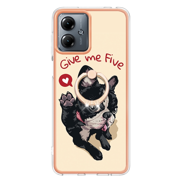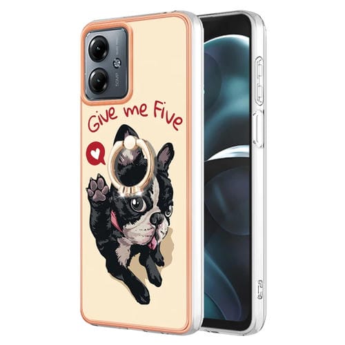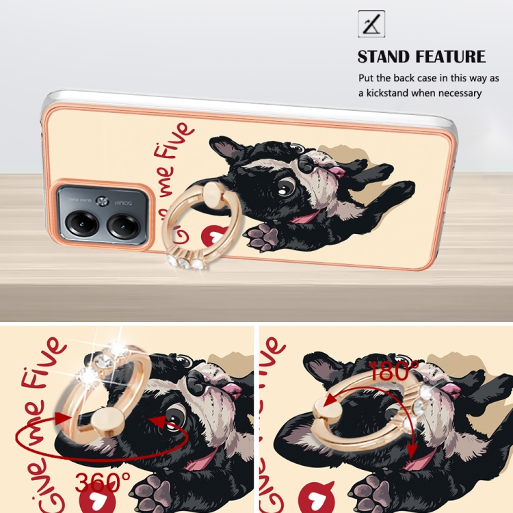 Estuche para Motorola Moto G14 Imd Doble Cara con Galvanoplastia y Soporte para Anillo (Lucky Dog)
