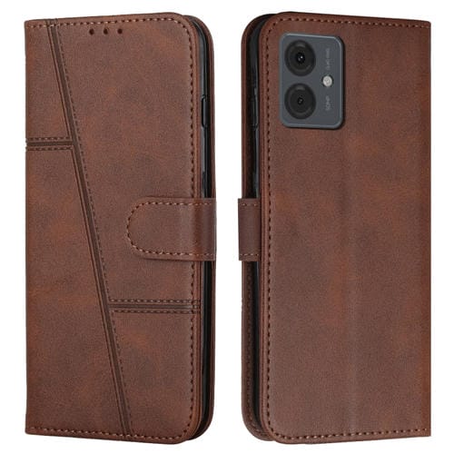 Funda de Cuero para Motorola Moto G14 con Hebilla y Textura de Becerro (Marrón)