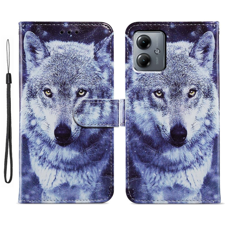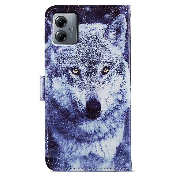 Funda de Cuero para Motorola Moto G14 con Tapa Horizontal y Patrón Pintado (Lobo Blanco)