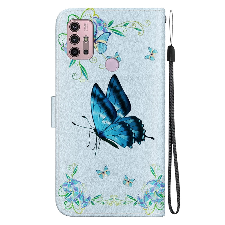 Funda de Cuero para Motorola Moto G30 G10 G20 con Dibujo Coloreado y Textura de Cristal (Pensamientos Azules)