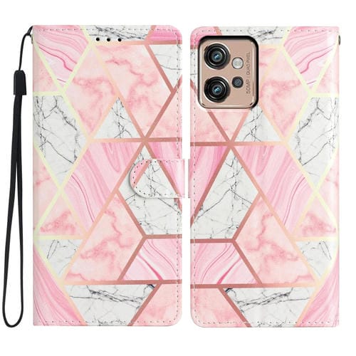 Funda de Cuero para Motorola Moto G32 con Dibujo Coloreado Mármol Rosa