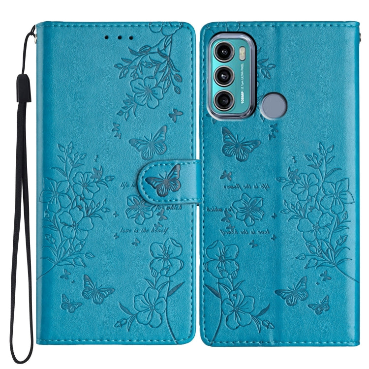 Funda de Cuero para Motorola Moto G40 Fusion con Mariposas y Flores (Azul)
