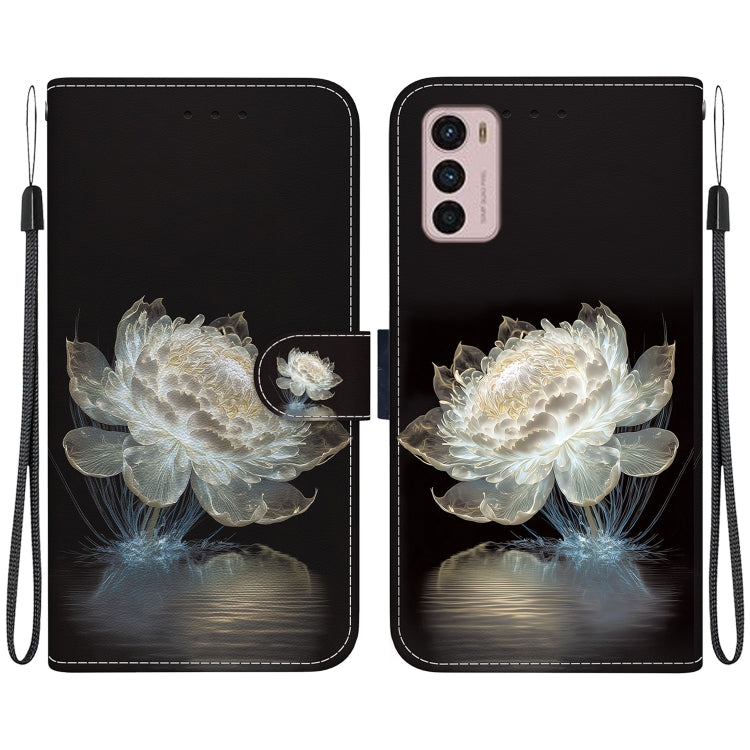 Estuche de Cuero para Motorola Moto G42 con Dibujo Coloreado y Textura de Cristal (Peonía de Cristal)