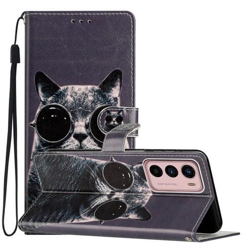 Estuche de Cuero para Motorola Moto G42 con Dibujo Coloreado Gafas de Sol Cat