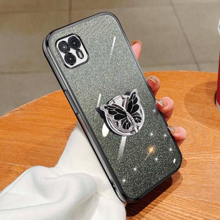 Funda TPU para Motorola Moto G50 5G con Soporte de Mariposa y Brillo Degradado (Negro)