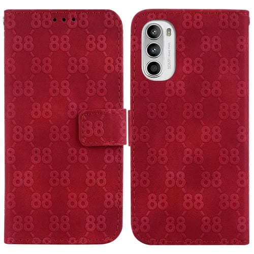 - 1x Funda para Motorola Moto G52 Doble 8 en forma de caja de Cuero en relieve (Rojo)