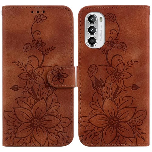 - 1x Funda de Cuero con Relieve Lily para Motorola Moto G52 (Marrón)