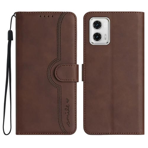 - 1x Funda de Cuero para Motorola Moto G53, G13 y G23 con Sensación de Piel y Patrón de Corazón (Marrón)