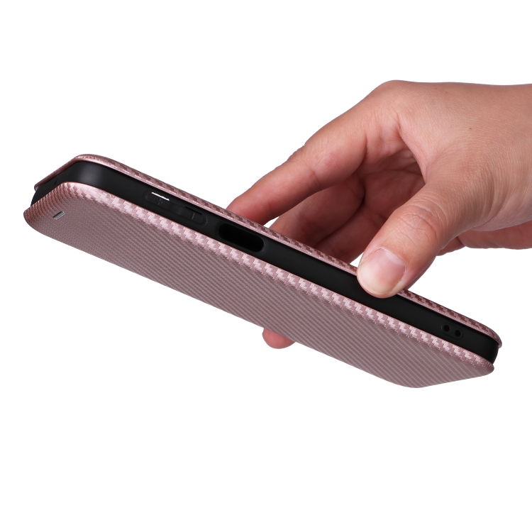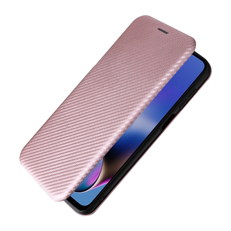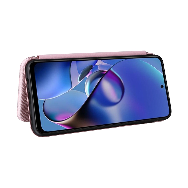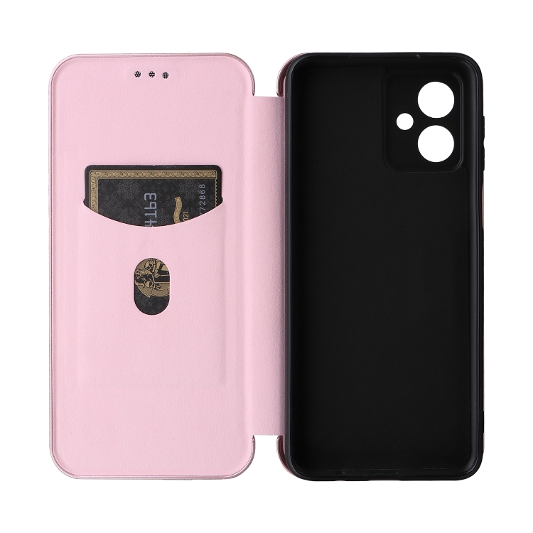 Funda de Cuero para Motorola Moto G54 5G con Tapa y Textura de Fibra de Carbono (Rosa)