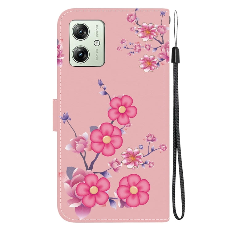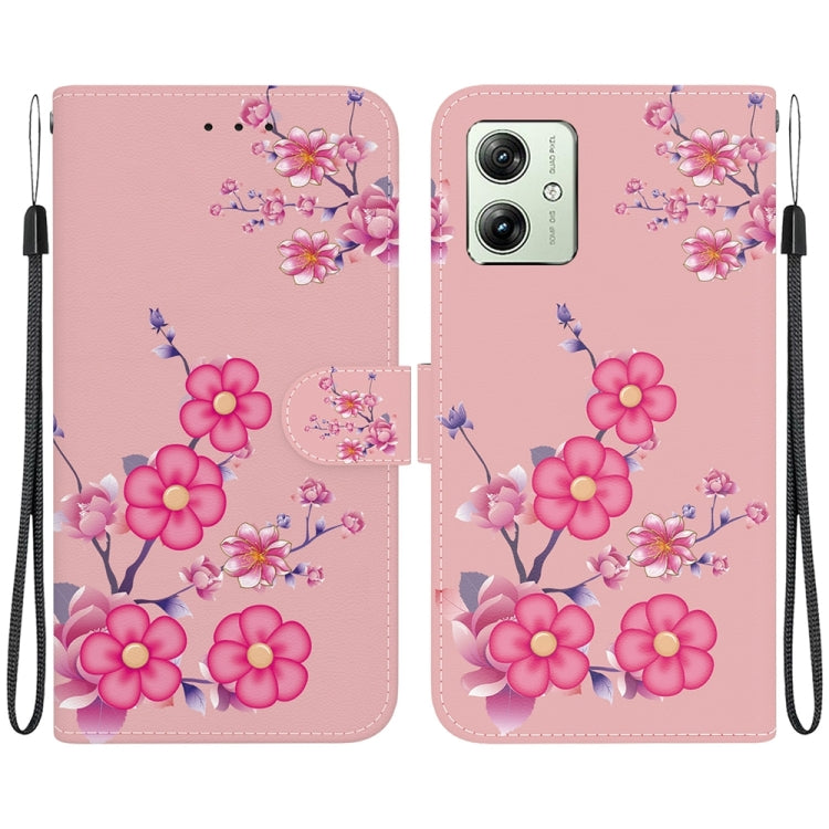 Estuche de Cuero para Motorola Moto G54 con Dibujo Coloreado y Textura de Cristal (Flores de Cerezo)