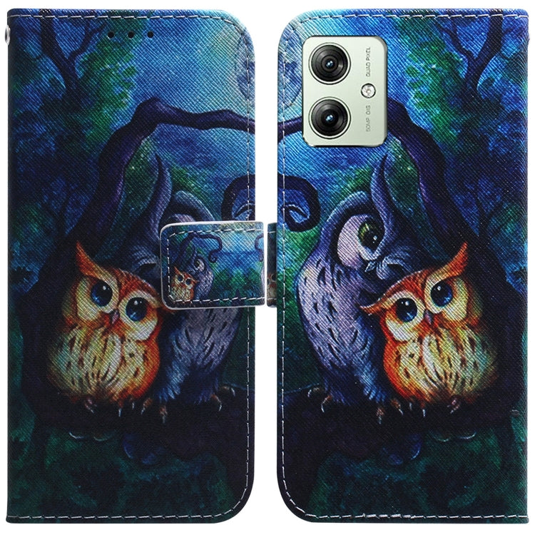 Funda de Cuero con Tapa para Motorola Moto G54 con Dibujo Coloreado de Búho de Pintura al Óleo