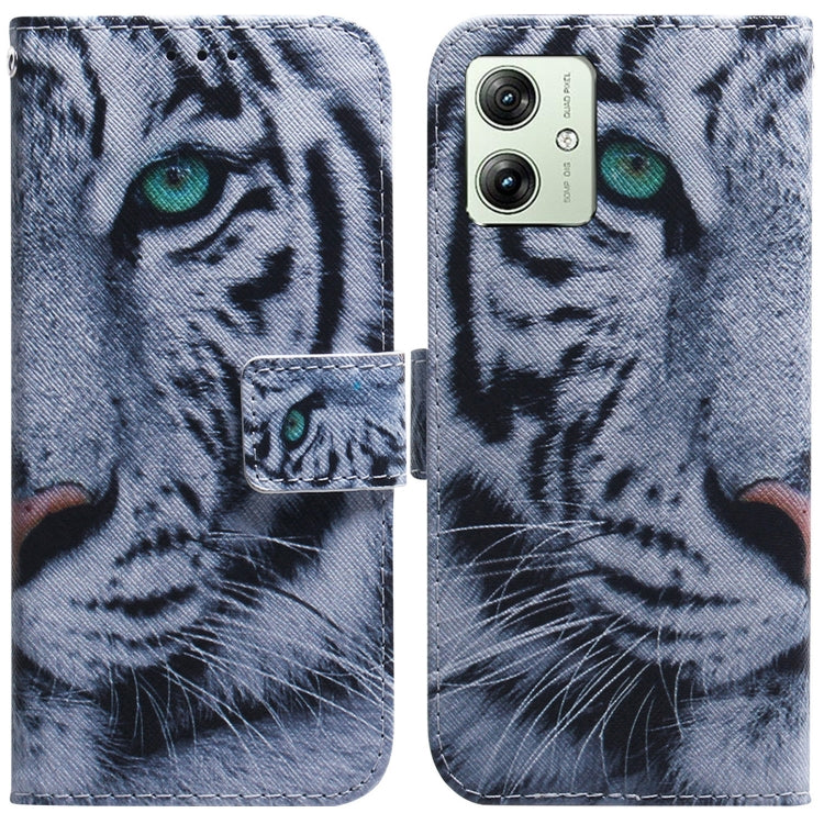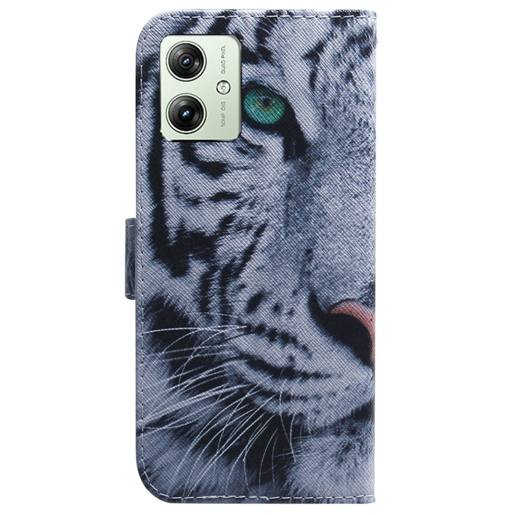 Funda de Cuero con Tapa para Motorola Moto G54 con Dibujo Tigre Coloreado