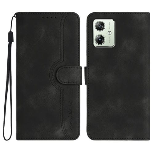 Funda de Cuero para Motorola Moto G54 Global con Diseño Heart Pattern Skin Feel (Negro)