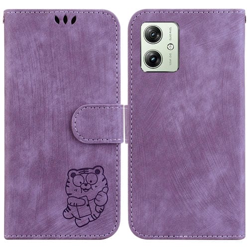 - 1x Funda de Cuero en Relieve para Motorola Moto G54 Little Tiger (Púrpura)