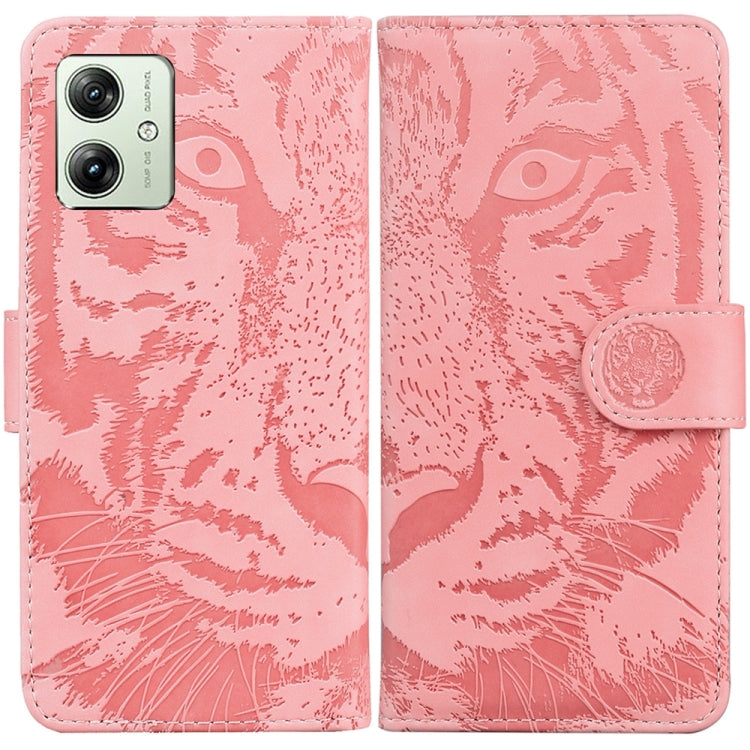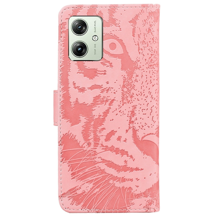 Funda de Cuero para Motorola Moto G54 Tiger con Patrón Embossing (Rosa)