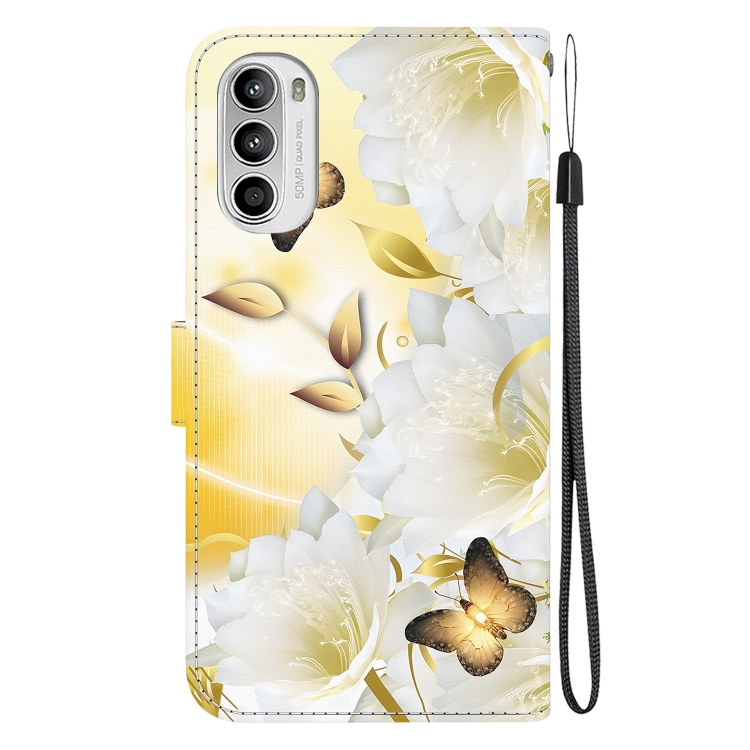 Funda de Cuero para Motorola Moto G62 5G con Dibujo Epiphyllum Mariposa Dorada (Textura Cristal)