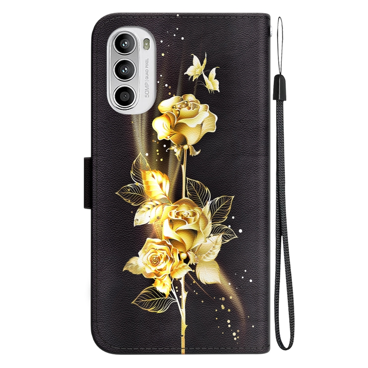Funda de Cuero para Motorola Moto G62 5G con Dibujo Coloreado y Textura de Cristal (Mariposa Dorada Rosa)