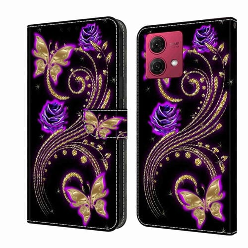 Funda Protectora de Cuero para Motorola Moto G84 Crystal 3D a Prueba de Golpes (Púrpura)