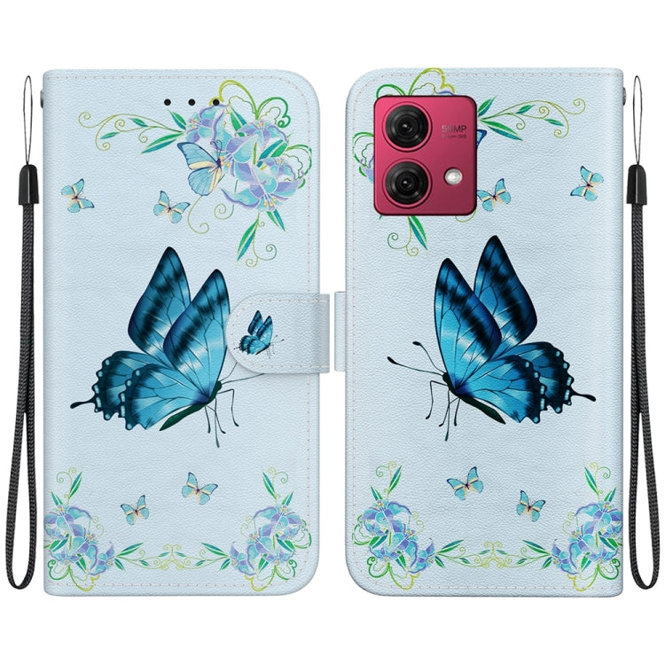 Estuche de Cuero para Motorola Moto G84 con Dibujo Coloreado y Textura de Cristal (Pensamientos Azules)