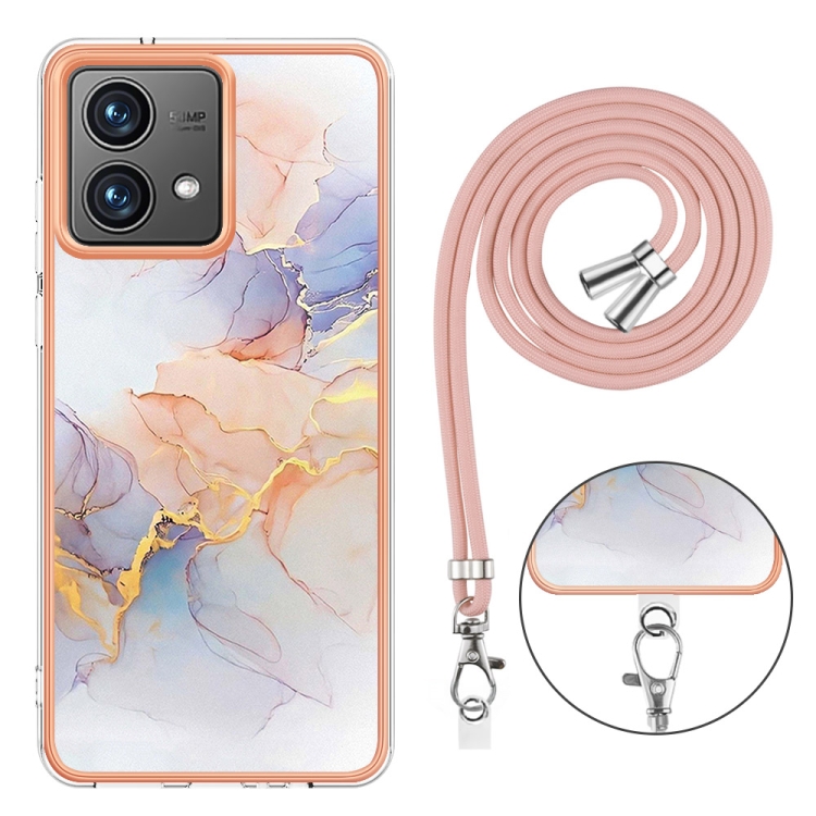 Estuche para Motorola Moto G84 TPU Imd con Galvanoplastia y Cordón (Mármol Blanco)