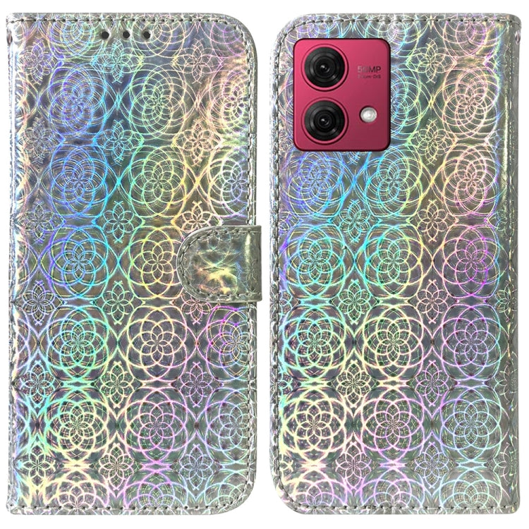 Funda de Cuero para Motorola Moto G84 con Hebilla Magnética Colorida (Plata)