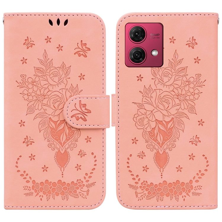 Funda para Motorola Moto G84 de Cuero con Relieve Mariposa y Rosa (Rosa)