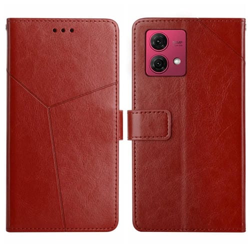 Funda de Cuero para Motorola Moto G84 Ht01 con Tapa y Patrón en Forma de Y (Marrón)